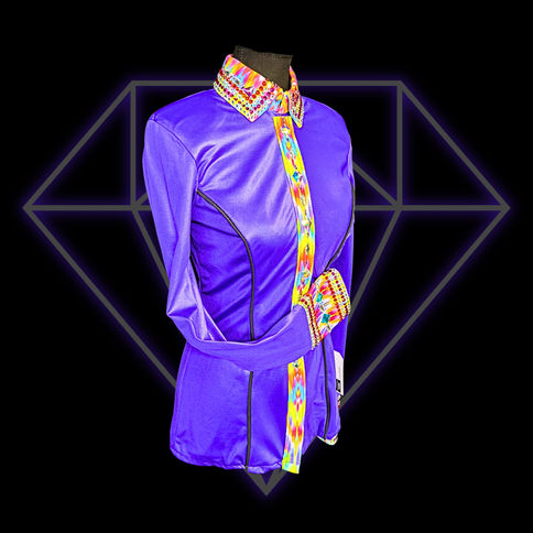 Purple metallic stretch base with multicolor accents including purple, AB, and turquoise crystals.